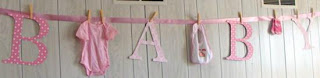 Just printed out "BABY" and hung clothes in between - classic baby shower clothesline